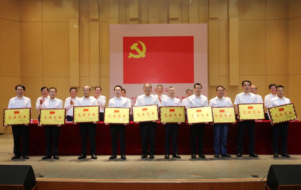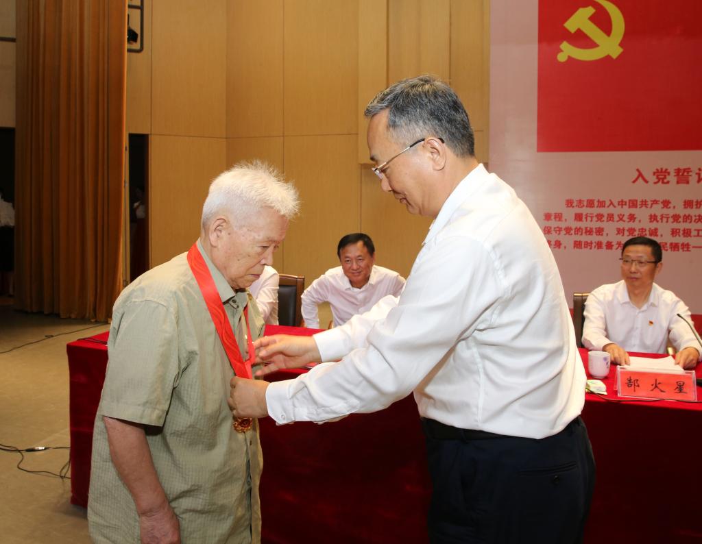 会上,校党委副书记郜火星宣读了37名获得“光荣在党50年”纪念章的老党员名单,校党委副书记、工会主席王文臣宣读了中共河南省委和省委高校工委“两优一先”表彰文件,校党委委员、副校长刘彦明宣读了首批全省高校省级样板党支部评审结果,校纪委书记、监察专员龚立新宣读了学校“两优一先”表彰决定。数学与统计学院党委副书记洪亮荣获“河南省优秀党务工作者”称号,井强山、周葆春、荆胜利、江玉安、路璐荣获“河南省高等学校优秀共产党员”称号,唐国战、李军辉荣获“河南省高等学校优秀党务工作者”称号,计算机与信息技术学院党委、地理科学学院党委、国际教育学院学院党委、校医院直属党支部、后勤管理处党支部荣获“河南省高等学校先进基层党组织”称号。马克思主义学院研究生党支部等4个党支部被授予“首批全省高校省级样板党支部”称号。訾其伦等138名同志荣获校级“优秀共产党员”称号,曹明贵等35名同志荣获校级“优秀党务工作者”称号;数学与统计学院等10个分党委荣获校级“先进党委”称号;马克思主义学院学生第二党支部等58个党支部荣获校级“先进党支部”称号。