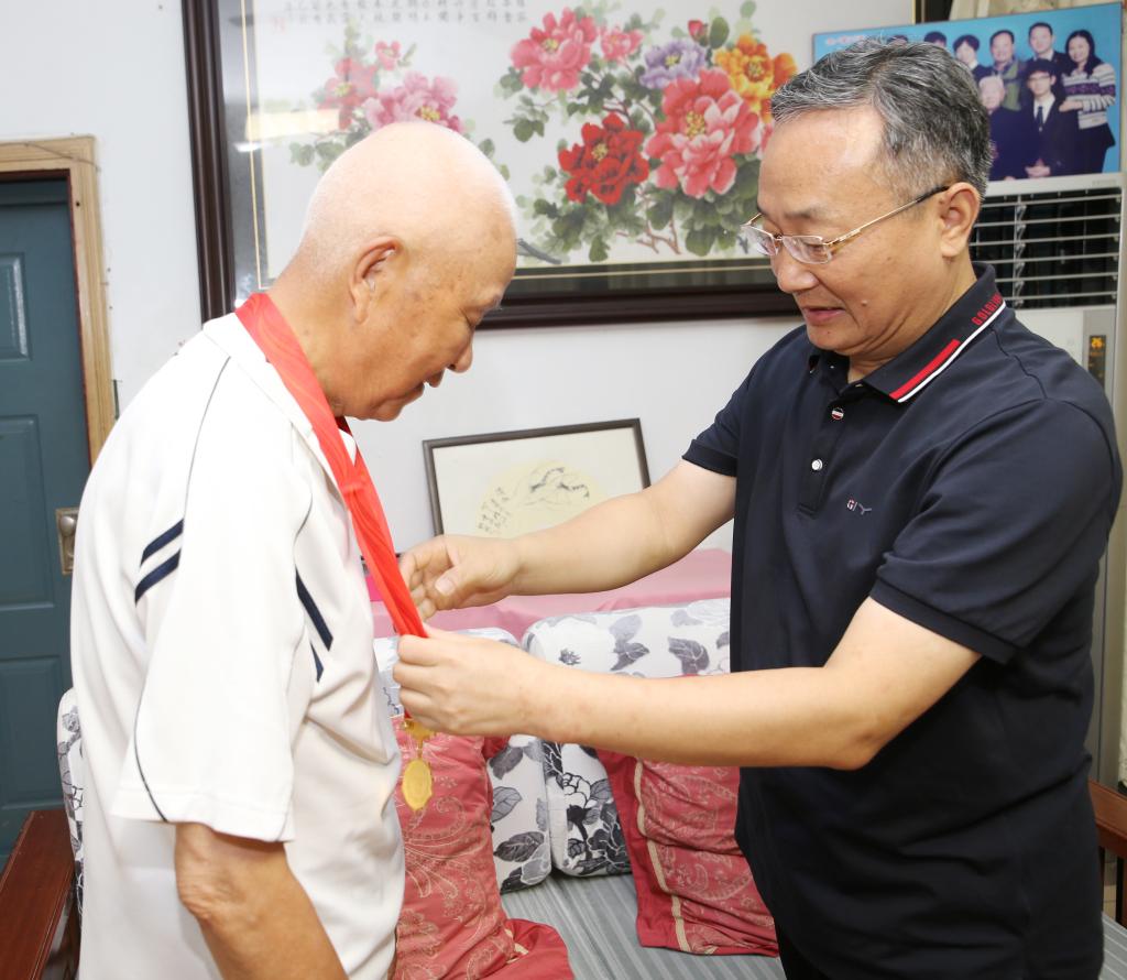 在老党员郝胜道家中,李俊与他亲切交谈,并为他佩戴了“光荣在党50年”纪念章,感谢他为学校各项事业作出的贡献。抚摸着熠熠生辉的纪念章,郝胜道激动地说:“我一辈子都生活工作在师院,亲身经历见证了师院的发展和变迁。作为一名老党员,我会一如既往地加强理论学习,坚持做习近平新时代中国特色社会主义思想的坚定信仰者和忠实实践者,继续为师院发展做出力所能及的贡献。”