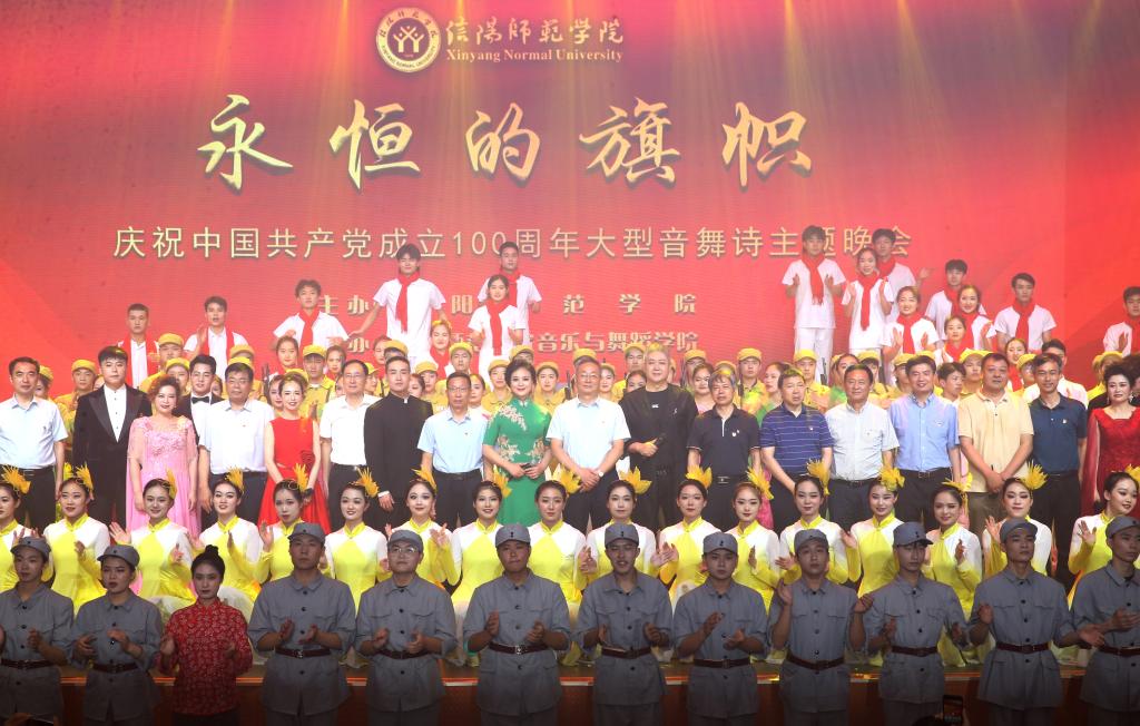 红旗如画,展现百年光辉历程,岁月如歌,颂唱百年丰功伟绩。6月17日,由学校主办,音乐与舞蹈学院承办的“永恒的旗帜”庆祝中国共产党成立100周年大型音舞诗主题晚会在艺术楼音乐厅隆重上演。校党书记王文鹏,校长李俊,校党委副书记郜火星,校党委副书记、工会主席王文臣,副校长刘彦明、陈登报、余本海、王金云、胡海华与金沙官网师生代表600余人一同观看晚会。晚会采取“现场+云直播”模式,直播间期,在线观看人数达3.5万人次。
