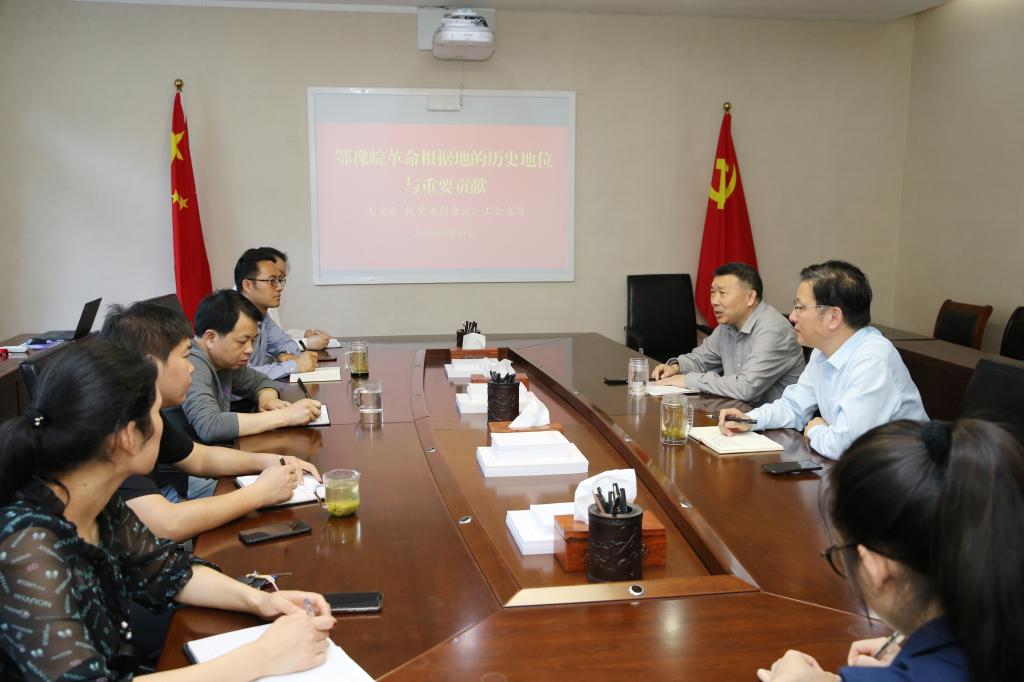为认真贯彻落实党员领导干部上讲台为师生讲思想政治理论课的工作要求,近期校领导先后到联系单位和部门讲党史学习教育专题党课。5月10日,校党委副书记、工会主席王文臣在综合办公楼313会议室为党委宣传部党支部作了题为《鄂豫皖革命根据地的历史地位与重要贡献》的专题党课。