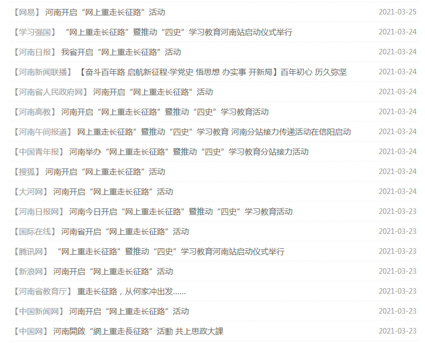 【河南高教】河南开启“网上重走长征路”暨推动“四史”学习教育活动(2021年3月23日)