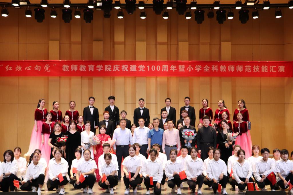 为庆祝建党100周年,深化党史学习教育成果,提升小学全科教师师范生音乐技能,5月24日晚,教师教育学院在艺术楼音乐厅举办“红烛心向党”庆祝建党百年暨小学全科教师技能汇演。学生工作处副处长陈铭、音乐与舞蹈学院副院长陈新宇教授、教师教育学院党政班子及师生共同观看了此次汇演。