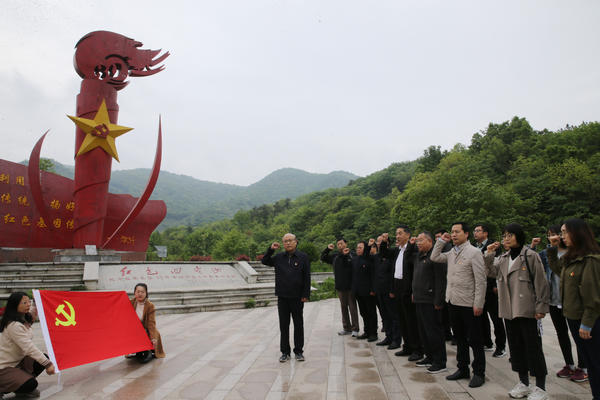 土地革命初期,中共河南省委、豫南特委领导发动“四望山暴动”,开创了河南省第一个纵横数百里的红色区域。在纪念红军长征胜利80周年浉河区火种采集传递站,进行了现场教学。大家认真学习四望山革命历史,真切感受革命先烈的无私奉献精神,深深思考习近平总书记提出的“我们当初是从哪里出发的、为什么出发的”问题。面向鲜红的党旗,全体党员举起右手、紧握拳头,庄严、嘹亮地宣读入党誓词,坚定表达为共产主义奋斗终身、随时准备为党和人民牺牲一切的理想信念。