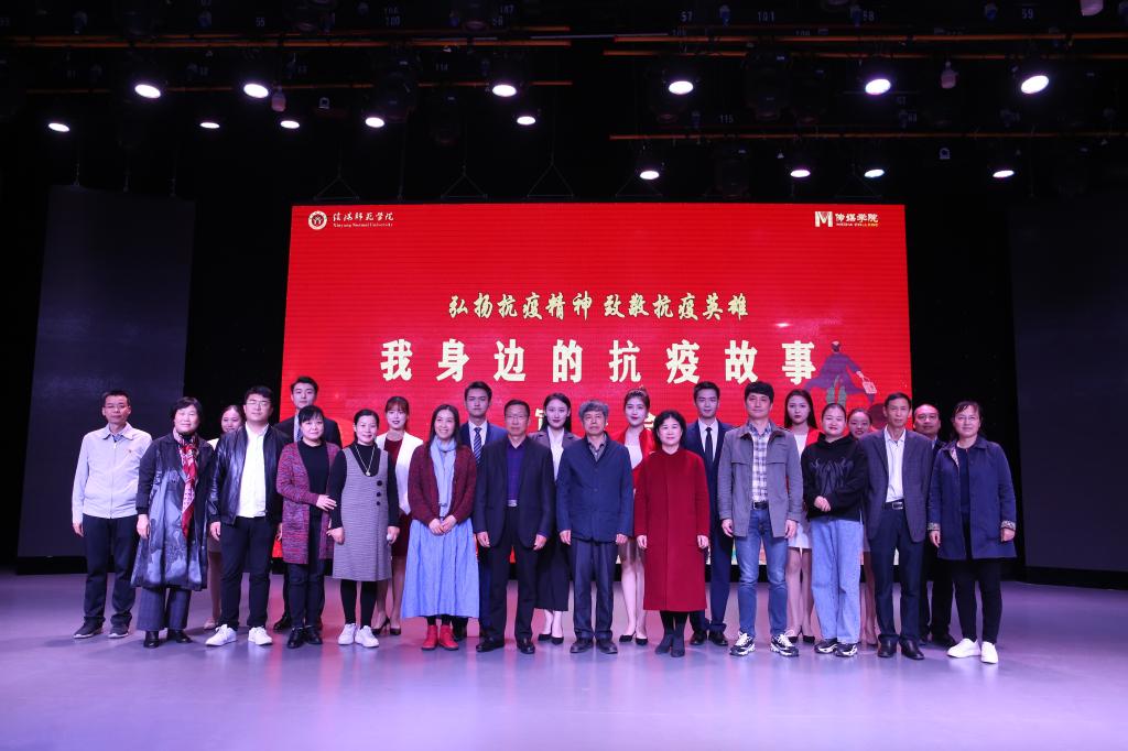 “我身边的抗疫故事”宣讲会是传媒学院学习贯彻习近平总书记在全国抗击新冠肺炎疫情表彰大会上的重要讲话精神,落实中宣部、教育部《结合开学入学教育开展抗疫精神宣传》通知重要部署,扎实推进全省教育系统开展“把灾难当教材、与祖国共成长”主题教育活动,进一步弘扬伟大抗疫精神和深化讲价值观故事主题教育的重要举措。为做好宣讲,学院组建一支由学生党员、发展对象、入党积极分子组成的“红色文艺轻骑兵”,通过组织学习抗疫精神,邀请信阳市中心医院一线抗疫工作人员与师生面对面交流,掌握了丰富的抗疫素材,为故事创作打下基础。学院将抗疫故事宣讲纳入新生入学教育、入党积极分子教育和师德师风教育,把伟大抗疫精神作为生动爱国主义教材,打造了一堂感人至深的“故事党课”。注重发挥“课程思政”培育时代新人的合力作用,加强专业协同,发挥各自专长,形成了戏文学生写故事、播音学生讲故事、编导、动画学生制作故事视频、故事插画的全方位专业实践育人模式,通过抗疫故事宣讲,生动活泼地开展宣传教育,激励广大学生弘扬伟大抗疫精神,为实现中华民族伟大复兴的中国梦学好知识、成长成才。