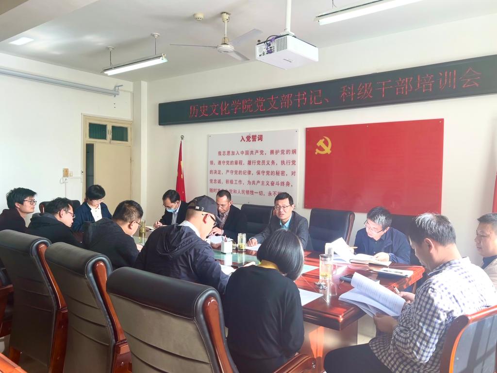 4月19日下午,历史文化学院举行理论学习中心组(扩大)学习暨支部书记、科级干部培训会。学院党委成员、党支部书记和科级干部参加培训。会议由历史文化学院党委书记李辉主持。