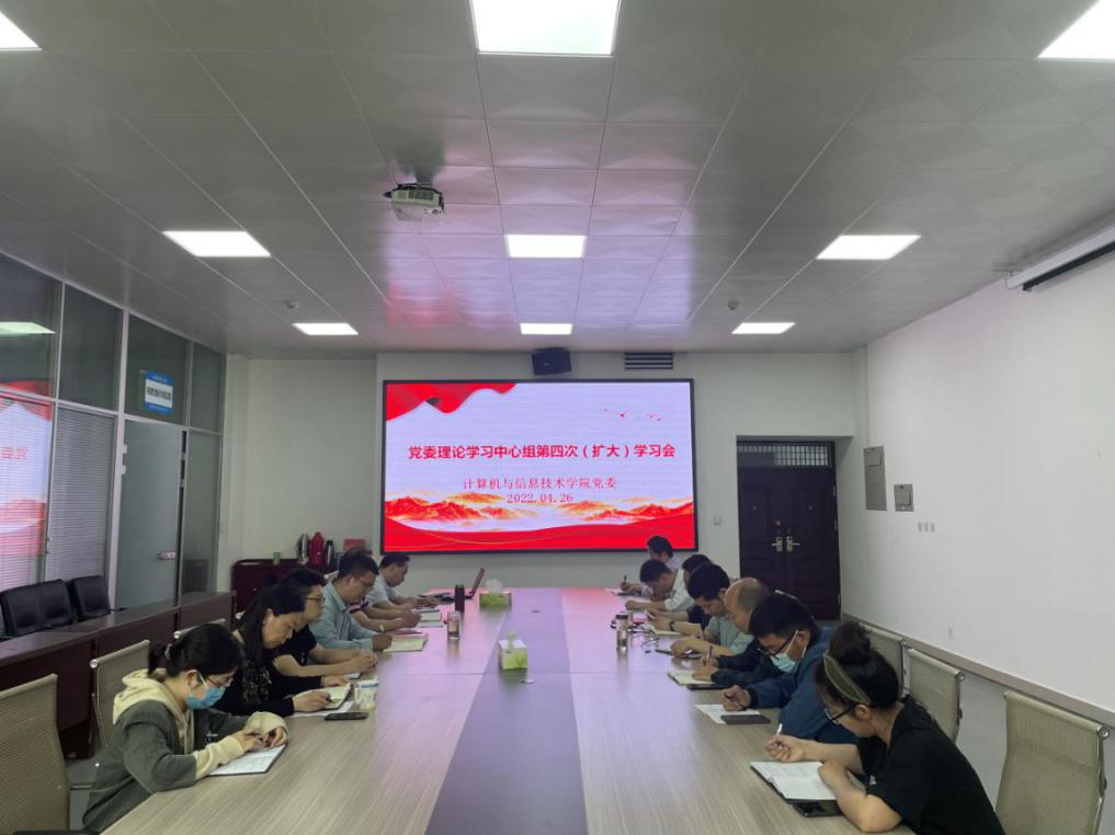 4月26日,计算机与信息技术学院在计科楼203会议室召开党委理论学习中心组(扩大)学习会议,学院全体党委委员和各支部书记参加。会议由学院党委书记熊炎主持。
