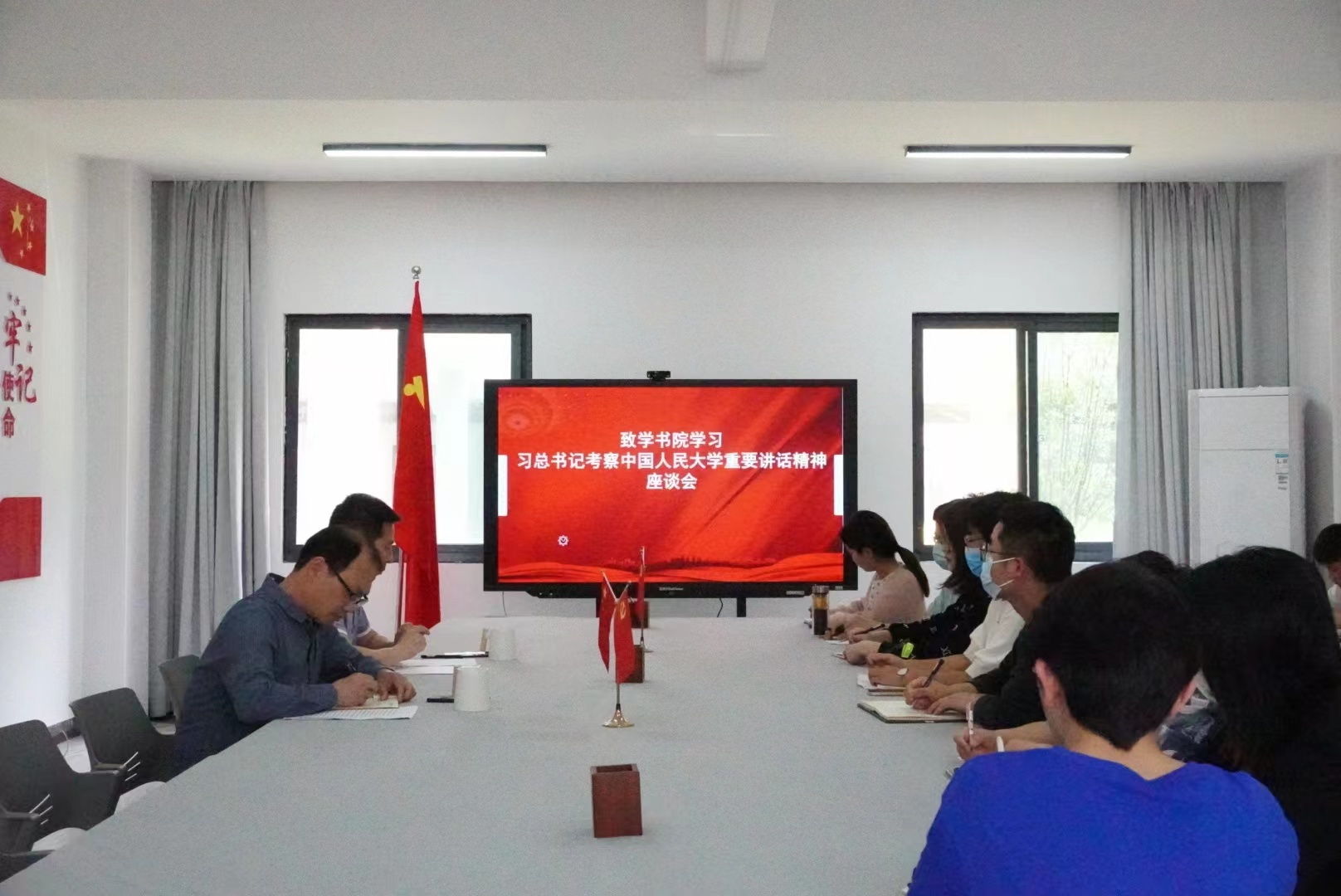 4月27日,致学书院召开学习习近平总书记考察调研中国人民大学重要讲话精神座谈会。书院领导班子与师生代表参加会议。