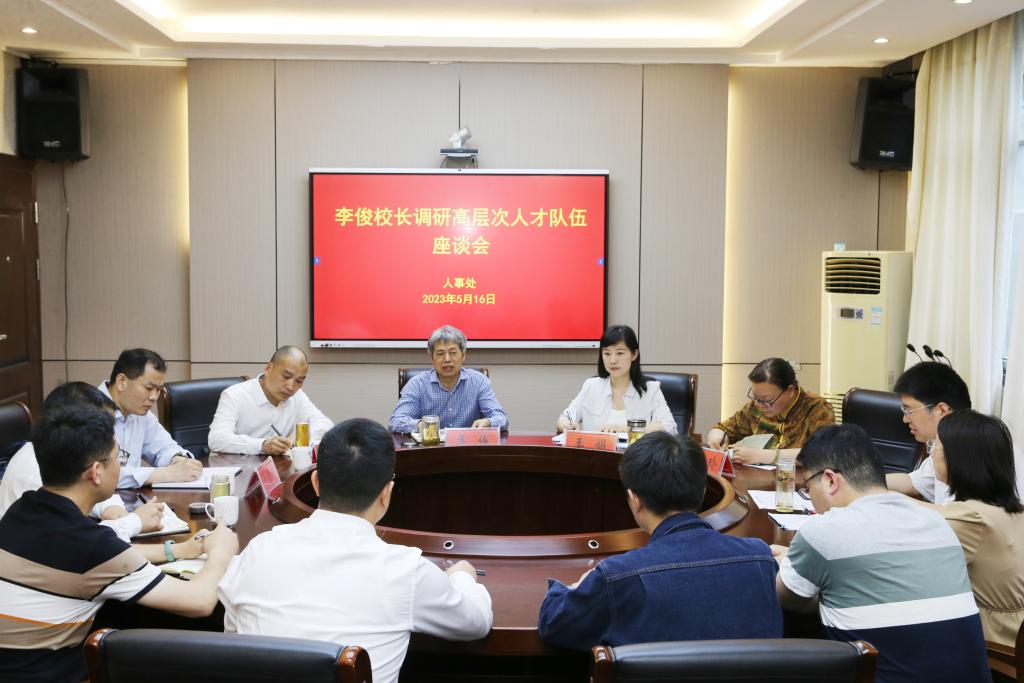 5月16日,校长李俊深入人事处、马克思主义学院、化学化工学院专题调研高层次人才队伍建设工作。校长办公室、审计处负责同志陪同调研。